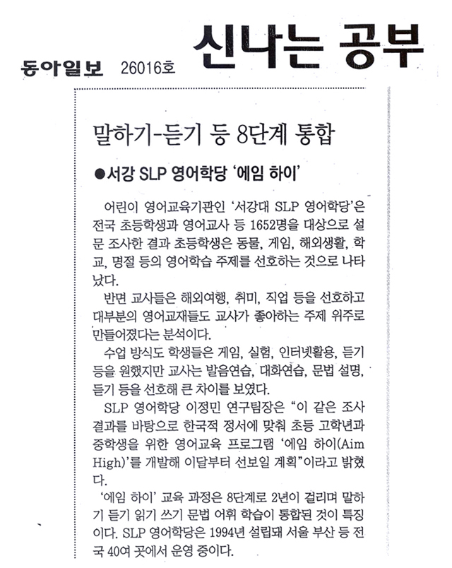 소년조선일보 - SLP 관련 기사> 외국 안 가도 영어 잘할 수 있어요!