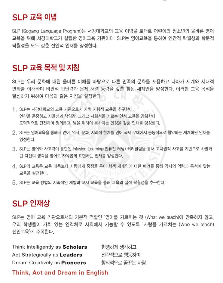 지난 5월 새로이 발표된, 서강SLP의 뉴 인재상에 관련한 기사가 아시아 투데이에 실렸습니다.기사 원문 보기(클릭)SLP에서는 지난 18년간의 교육철학을 바탕으로, 인재상을 재정립하여 아래와 같이 발표하였습니다.